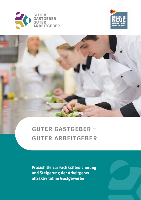 Attraktive Arbeitsbedingungen und ein positives Arbeitgeber-Image sind Schlüsselfaktoren für eine erfolgreiche Fachkräftesicherung. Im Rahmen des Projektes „Guter Gastgeber – Guter Arbeitgeber" haben die DEHOGA Landesverbände Rheinland-Pfalz und Mecklenburg-Vorpommern, unterstützt durch den DEHOGA Bundesverband, u.a. eine Praxishilfe mit Tipps und Beispielen für moderne Personalpolitik erarbeitet. Die Broschüre zeigt auf anschauliche Weise fünf zentrale Handlungsfelder auf, in denen Betriebe personalpolitisch aktiv sein sollten: Gute Führung und Kommunikation, Personalrekrutierung und -bindung, Teamentwicklung, Weiterbildung und Kompetenzentwicklung sowie Gesundheitsförderung. Sie richtet sich an Inhaber und Führungskräfte von kleinen und mittleren Betrieben der Hotellerie und Gastronomie.