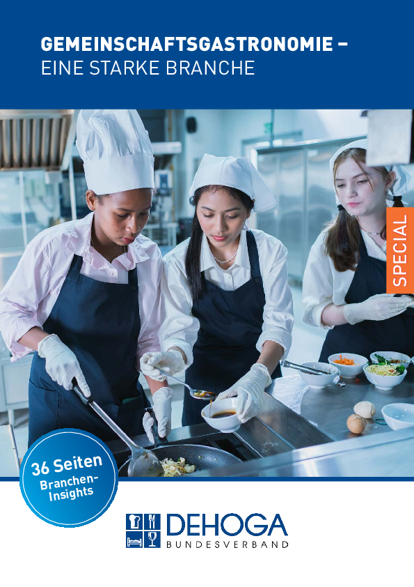 Fundierte Markteinschätzungen, Zahlen, Daten und Fakten zu diesem dynamischen und bedeutenden Branchensegment liefert das DEHOGA-Special "Gemeinschaftsgastronomie – eine starke Branche". Mit der Publikation beleuchtet die Fachabteilung Gemeinschaftsgastronomie im DEHOGA Bundesverband die vielfältigen Facetten und die Leistungsstärke der Branche und zeigt Perspektiven auf. Experteninterviews, zahlreiche Info-Grafiken und Praxisbeispiele untermauern und veranschaulichen die Ausführungen.